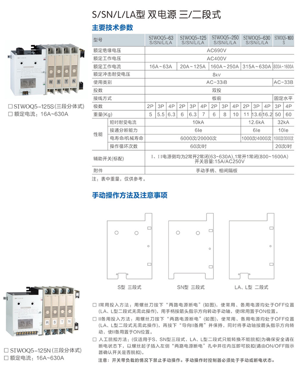常用投入方法:用螺絲刀按下“兩路電源斷電”,使常用、備用電源均處于OFF位置(LA、L型二段式無需此操作),用手柄按箭頭指示方向轉動手動軸,使l常用置于ON位置。